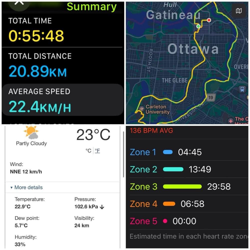 And if I hadn't done enough #workout today, I tossed on another 20.8 KM of #cycling on "the way home", managing to make a 0.8 KM ride 20KM longer. It was nice enough, though awfully bright out.