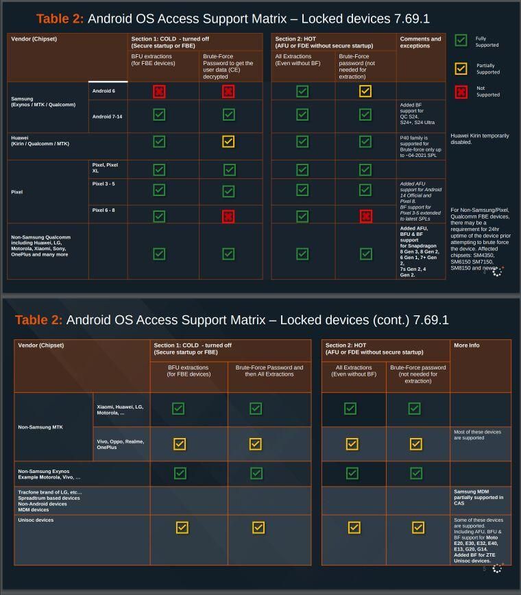 Cellebrite has similar capabilities for iOS devices. This is also from April 2024. We can get the same information from newer months. In the future, we'll avoid sharing screenshots and will simply communicate it via text since to prevent easily tracking down the ongoing leaks.