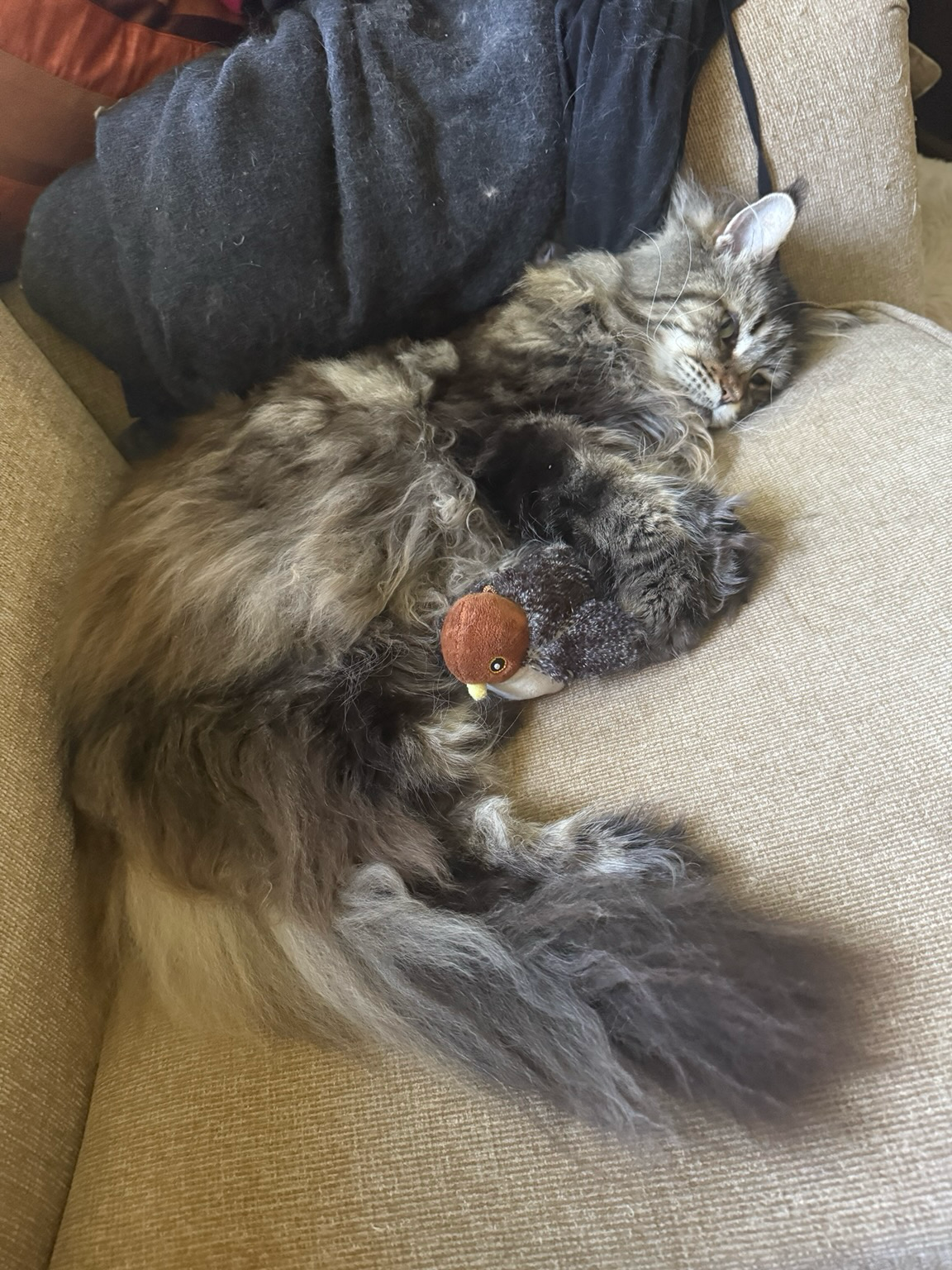 Elsa loves her flappy bird. #cats #catsOfMastodon