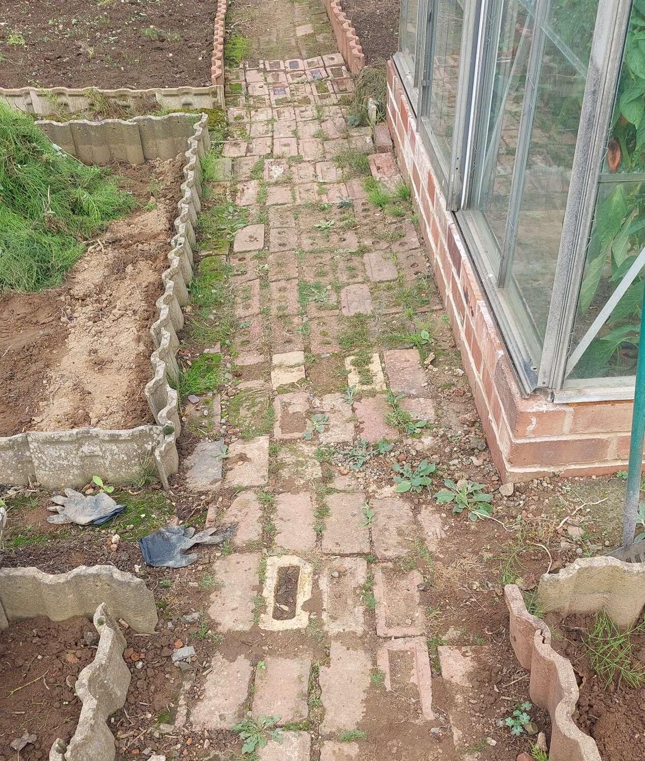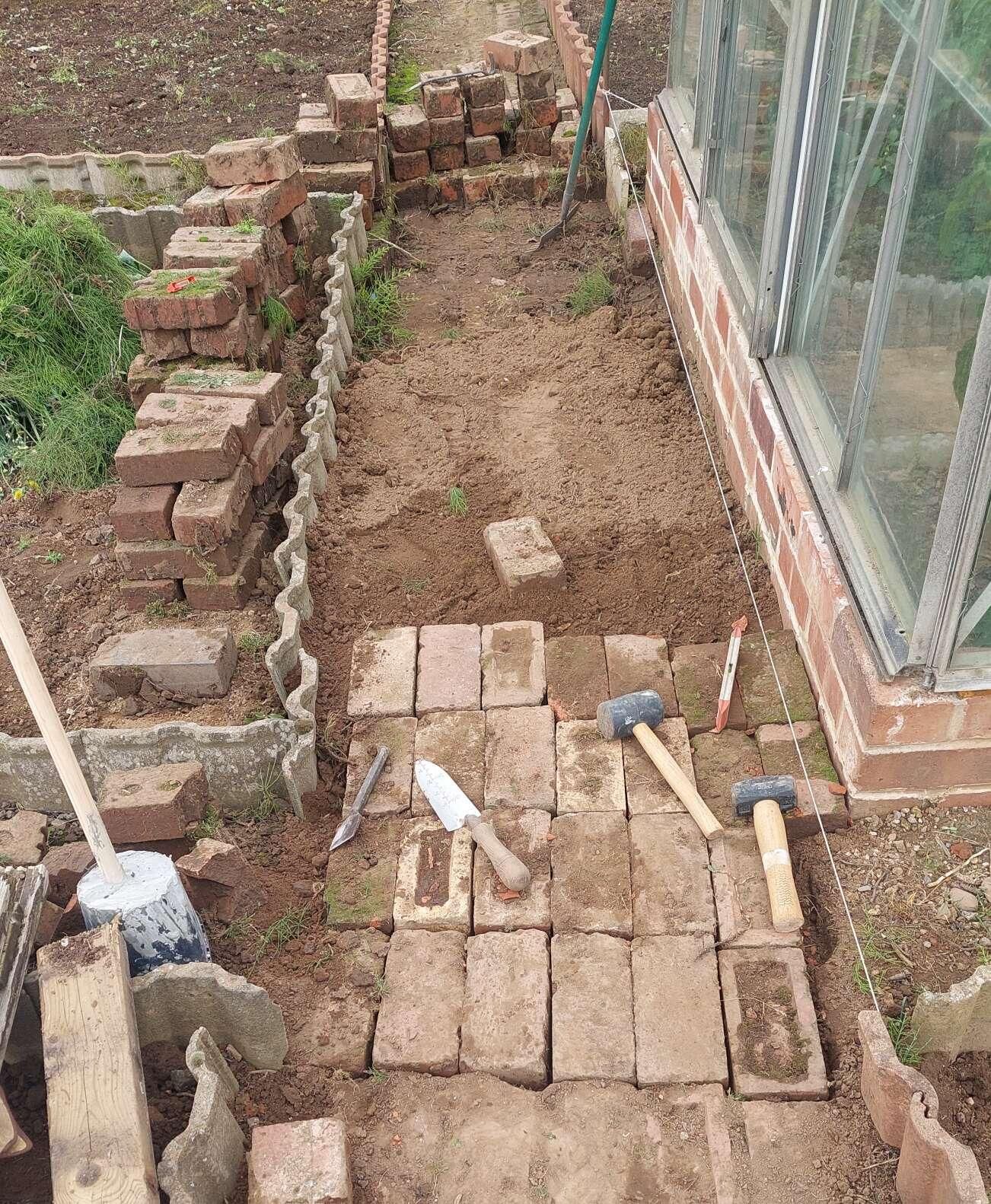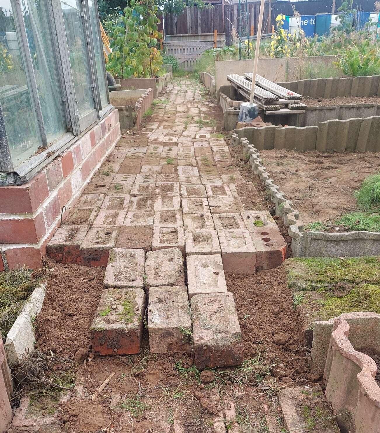 First section of footpath relaid. Taking the opportunity to dig out a sandy bed before i repalce it with good cow manure and biochar. 2 hrs, joe rogan on fountain.fm through the phone and you have proof of work.. 🤣