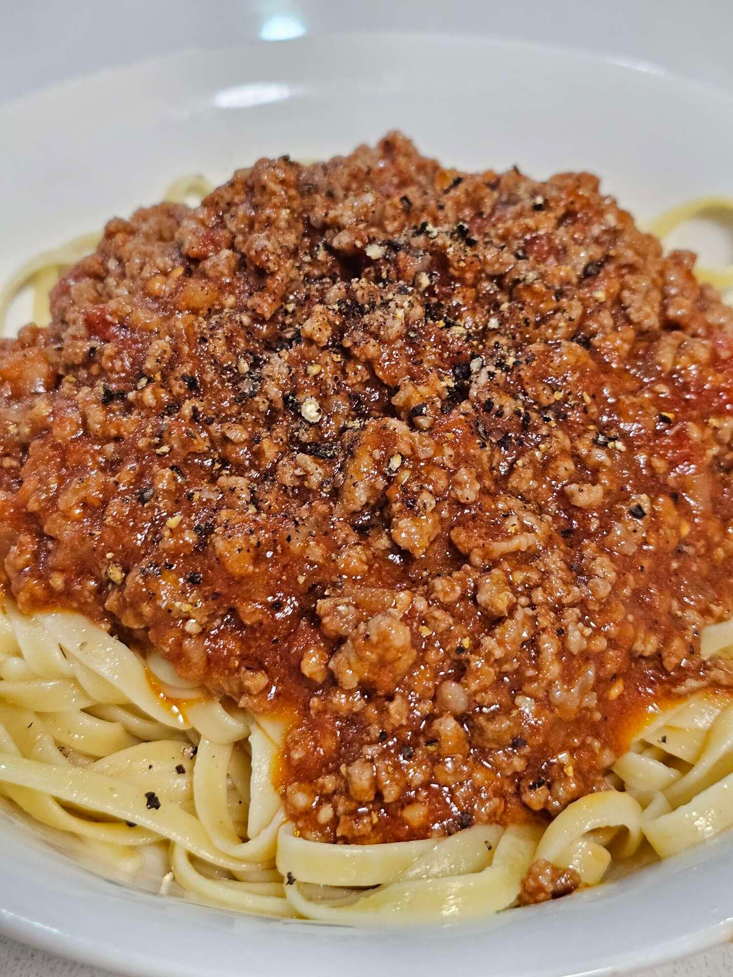 #goodevening #nostriches 😀 #dinner time! Fresh linguine bolognese made from scratch with cracked black pepper 😋🍝🫙🍽
