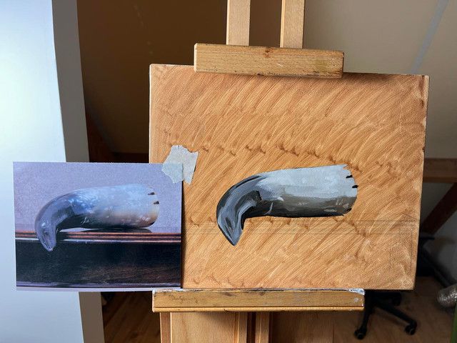 #oilpainting #finearts #art #contemporaryart #stilllife #horn #craftsmanship #elegantdesign #earthytone #artisticexpression #subtlety #realism #interiorart #texturedart #nuancedpalette #arstr #grownostr #wip #blog